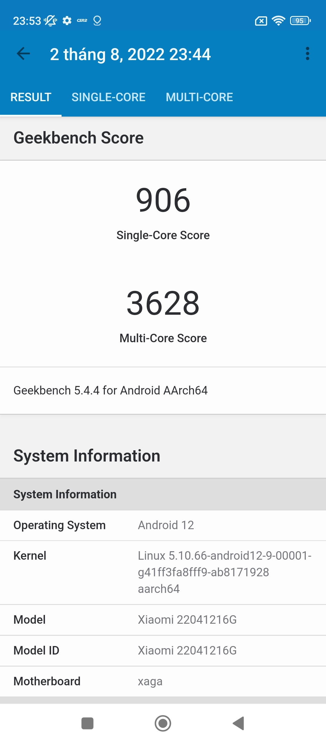 Điểm hiệu năng của POCO X4 GT khi chấm điểm bằng phần mềm AnTuTu Benchmark v9 và Geekbench 5