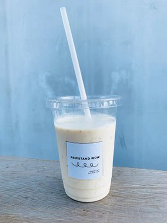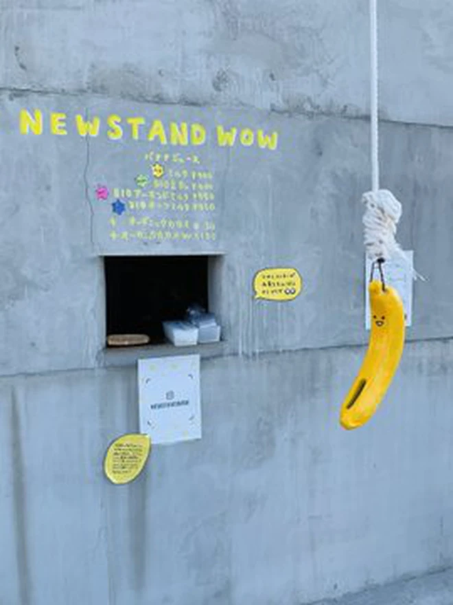 Và khách hàng cũng có thể dễ dàng đoán được từ một trong số ít các món đồ trang trí bên ngoài, rằng đặc sản của Newstand Wow là nước ép chuối. Mặc dù cửa hàng này cũng bán sữa hạnh nhân, sữa yến mạch và ca cao hữu cơ, nhưng chuối rõ ràng là niềm đam mê bất tận. Chủ của nó muốn sử dụng chuối chín để đồ uống của họ ngọt ngào và có hương vị, mà không cần cho thêm đường.