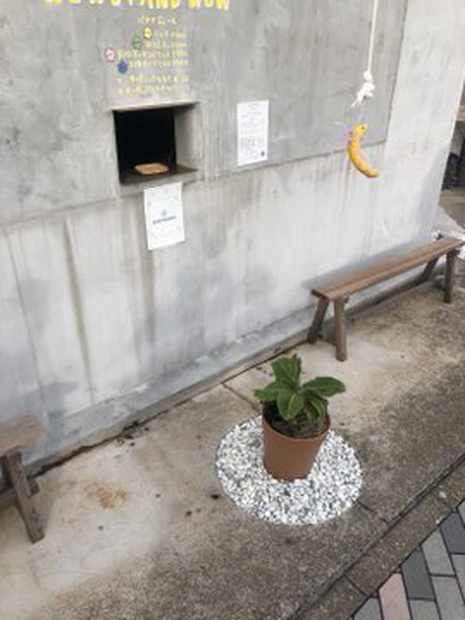 Quán cà phê trông như nhà hoang ở Nhật Bản, linh vật là một quả chuối, khách tới mua hàng qua ô cửa như lỗ châu mai