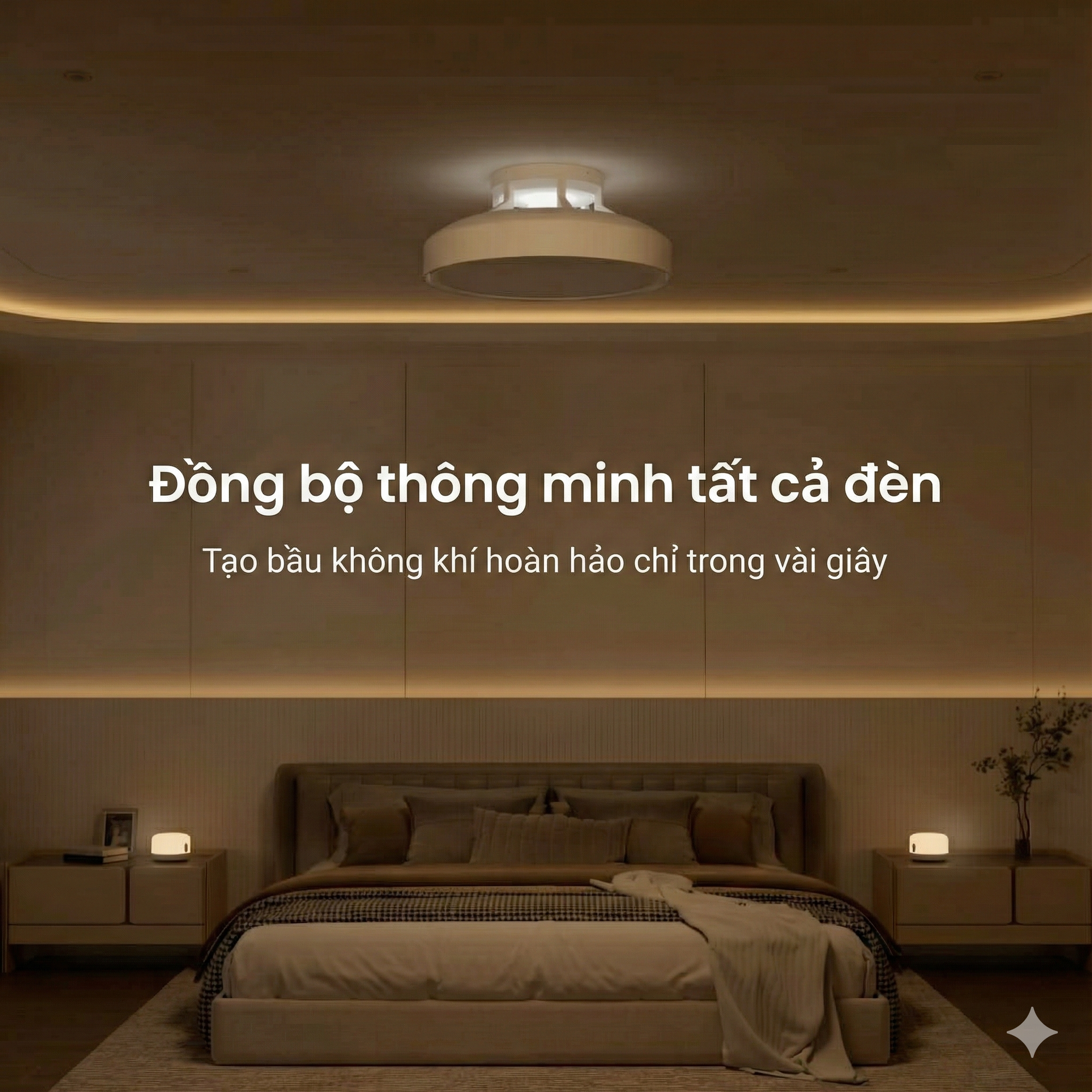 Yeelight Turbo là mẫu đèn quạt trần kết hợp hai chức năng chiếu sáng và làm mát trong một thiết bị, sử dụng thiết kế không cánh để tạo luồng gió tản đều và an toàn hơn khi lắp trong nhà có trẻ nhỏ hoặc trần thấp. Khối quạt đặt ẩn bên trong thân đèn nên toàn bộ sản phẩm nhìn gọn gàng, phù hợp phòng khách nhỏ, phòng ngủ hoặc phòng ăn của các căn hộ phổ thông.