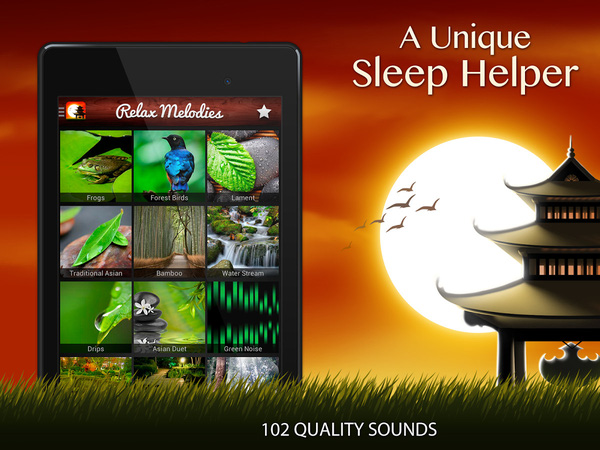 Nếu bạn khó ngủ hoặc không thể tập trung, hãy thử một trong 36 bản nhạc thiên nhiên chất lượng cảo trong Relax Melodies. Đây là những bản nhạc được thiết kế để kích thích não bộ của bạn bằng tần số âm thanh đặc biệt.