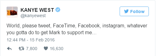 Tuy nhiên, trước khi có thêm tin tức về album mới của mình, Kanye đã phát đi một lời kêu gọi kỳ cục để giúp đỡ cho sự nghiệp đang sa sút đi trông thấy của mình. Và người mà anh ấy trông đợi sẽ cho mình 1 tỷ USD, không ai khác ngoài Mark Zuckerberg.