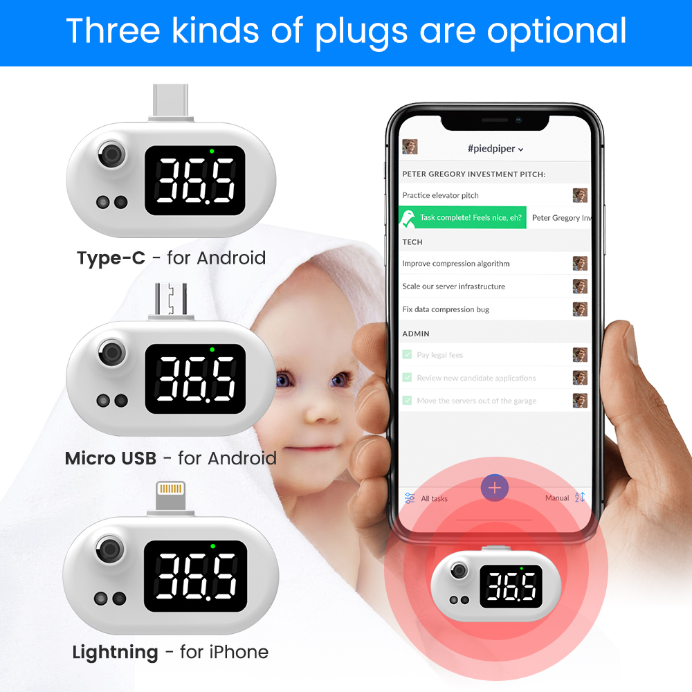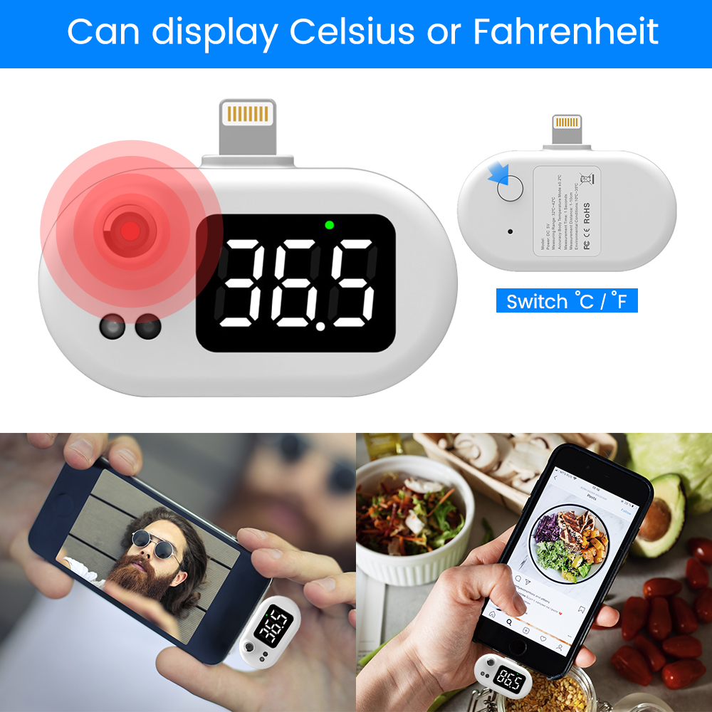 Phụ kiện công nghệ giờ xịn sò quá, có cả item biến smartphone thành nhiệt kế di động nữa luôn. Sản phẩm này kết nối với smartphone qua đầu nối type-C, giúp bạn đo nhiệt độ cơ thể nhanh chóng mà không cần chạm. Bạn chỉ cần đặt máy trước trán (cách khoảng 10 - 100mm) mà thôi.