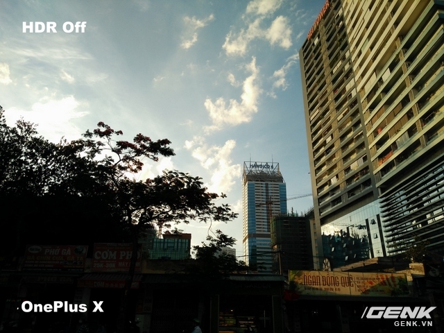 Khi bật chế độ HDR lên, ảnh chụp từ cả 2 máy đều làm sáng được hầu hết chi tiết, đơn cử như loạt biển hiệu ở phía dưới cùng... Đặc biệt, điểm thú vị của cả OnePlus và Xiaomi Mi 4 là ảnh chụp HDR không bị cháy sáng, tái hiện được đầy đủ các chi tiết có trong bức ảnh, mây trời vẫn đầy đủ...