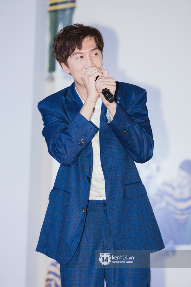 Lee Kwang Soo dẫn đầu đoàn phim, nổi bần bật trong bộ vest xanh. Anh chàng vô cùng vui vẻ, hạnh phúc nhưng cũng khá ngượng ngùng vì sự quan tâm, chào đón nồng nhiệt của fan Việt