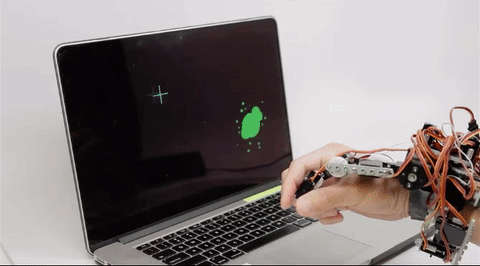 Thiết bị đa khớp này bao gồm 11 mô tơ được kết nối với nhau bằng cách mãnh ghép, mỗi mô tơ có tầm hoạt động lên đến 180 độ. Bàn tay robot này được gắn vào cổ tay người dùng, các dây cáp được kết nối với vòng tay cảm biến. Vòng tay này sẽ cảm nhận chuyển động của cơ cánh tay - một nhóm cơ hoạt động độc lập với chuyển động của bàn tay.
