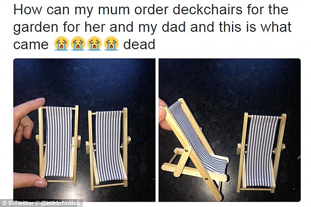 Con gái bà, Ellie đã đăng một bức ảnh chụp chiếc ghế xếp trên Twitter kèm theo ghi chú “Mẹ tôi đã đặt mua ghế xếp ngồi trong vườn. Và đây là những gì bà ấy nhận được”. Bài viết của cô đã nhận được hơn 4.300 lượt retweet.