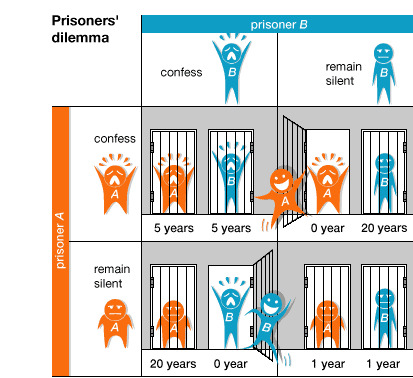 Hãy đặt mình vào hoàn cảnh tên tội phạm, liệu bạn có ĐỦ TIN TƯỞNG để im lặng, và chắc chắn rằng đồng phạm của mình cũng sẽ im lặng để cả hai cùng chịu 1 năm tù giảm không. Hay là bạn sẽ nghĩ đồng phạm mình im lặng, mình sẽ khai nó ra để nó chịu tù, còn mình sẽ được giải thoát?