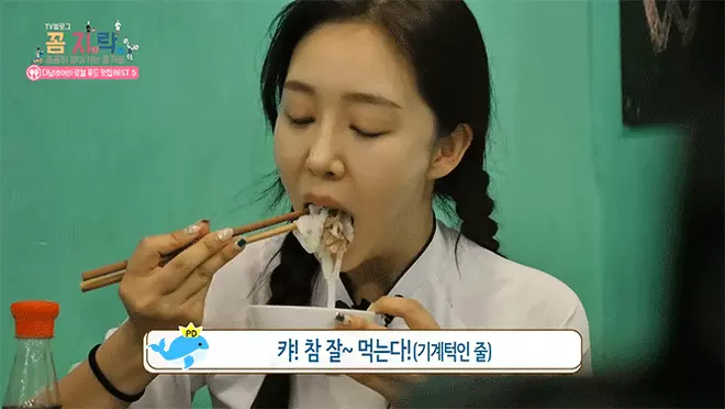 Và tất nhiên, ngồi trước tô phở vẫn còn nóng hổi cùng hương thơm hoàn hảo bốc lên tận mũi như thế này thì khó mà kiềm lòng lâu được. Cô nàng Hàn Quốc gắp ngay một đũa vừa phở vừa thịt kèm thêm rau thơm và cho vào miệng ăn một cách cực ngon lành.