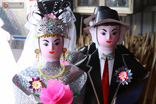 "Hoặc nếu vợ hoặc chồng mất sớm, người còn lại cũng có thể đốt chú rể hoặc cô dâu để người đã mất có cuộc sống đủ đầy dưới cõi âm". Cường chia sẻ, có thể sau này em sẽ nối nghiệp bố mẹ làm nghề vàng mã truyền thống. Còn hiện tại em vẫn chỉ như người phụ việc trong những công đoạn hoàn thiện sản phẩm.