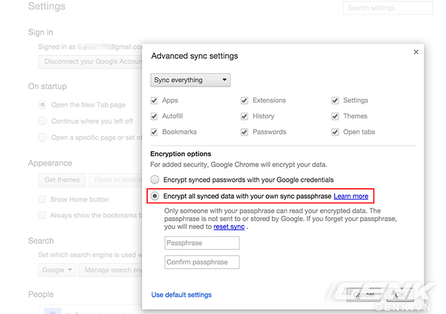 Tuy nhiên tính năng này cũng gây không ít lo ngại cho người dùng bởi bất kỳ ai khi kiểm soát được tài khoản Google đều có thể xem toàn bộ mật khẩu đã lưu trước đó. Có hai cách để giới hạn việc trên, đó là dừng việc đồng bộ tài khoản hoặc mã hóa dữ liệu trước khi đồng bộ.