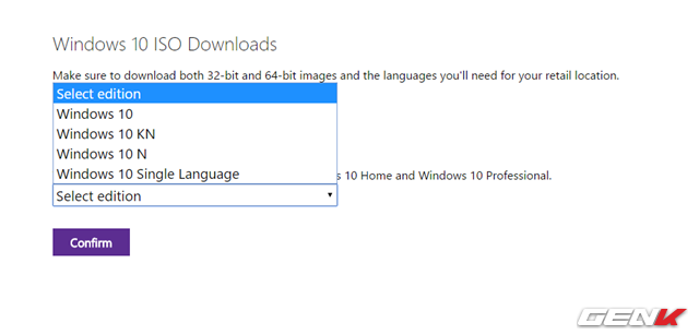 Tiếp theo bạn hãy lựa chọn ngôn ngữ của phiên bản Windows mình cần và nhấn tiếp Confirm.