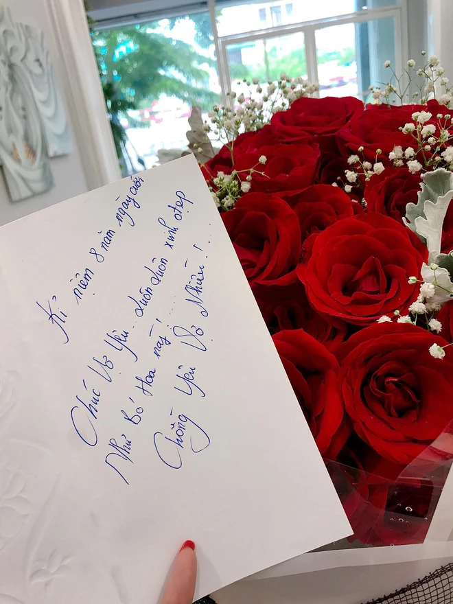 Chia sẻ hình ảnh về món quà bất ngờ chồng dành tặng mình, Bích Thuỳ vừa muốn nói lời cảm ơn anh vừa là để nhắc cả hai nhớ về những ngày tháng mới gặp nhau.