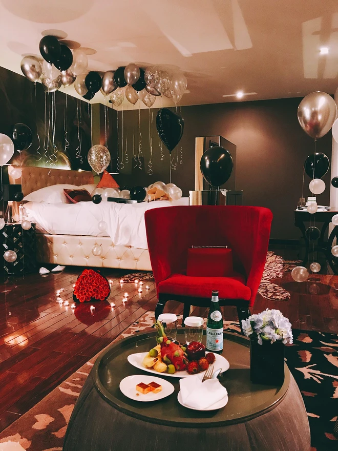 Đó là một bữa tiệc xa hoa tại khách sạn sang trọng. Nơi ấy được trang hoàn lộng lẫy bằng rất nhiều hoa, bóng bay, có rượu vang, một bữa ăn thịnh soạn và dĩ nhiên không thể thiếu món quà đắt tiền.