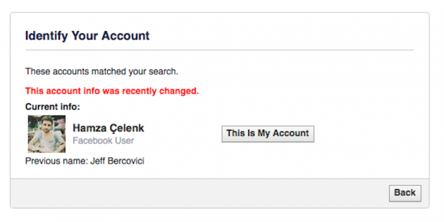 Tôi click vào nút “This is my Account” và trả lời một câu hỏi bảo mật để bắt đầu việc lấy lại tài khoản của mình. Tôi cho rằng, mọi việc khá rõ ràng rằng tôi đã không đổi tên tôi thành Hamza, cũng như đổi tài khoản email, chuyển sang Thổ Nhĩ Kỳ và phẫu thuật thẩm mỹ chỉ trong vòng khoảng một giờ.