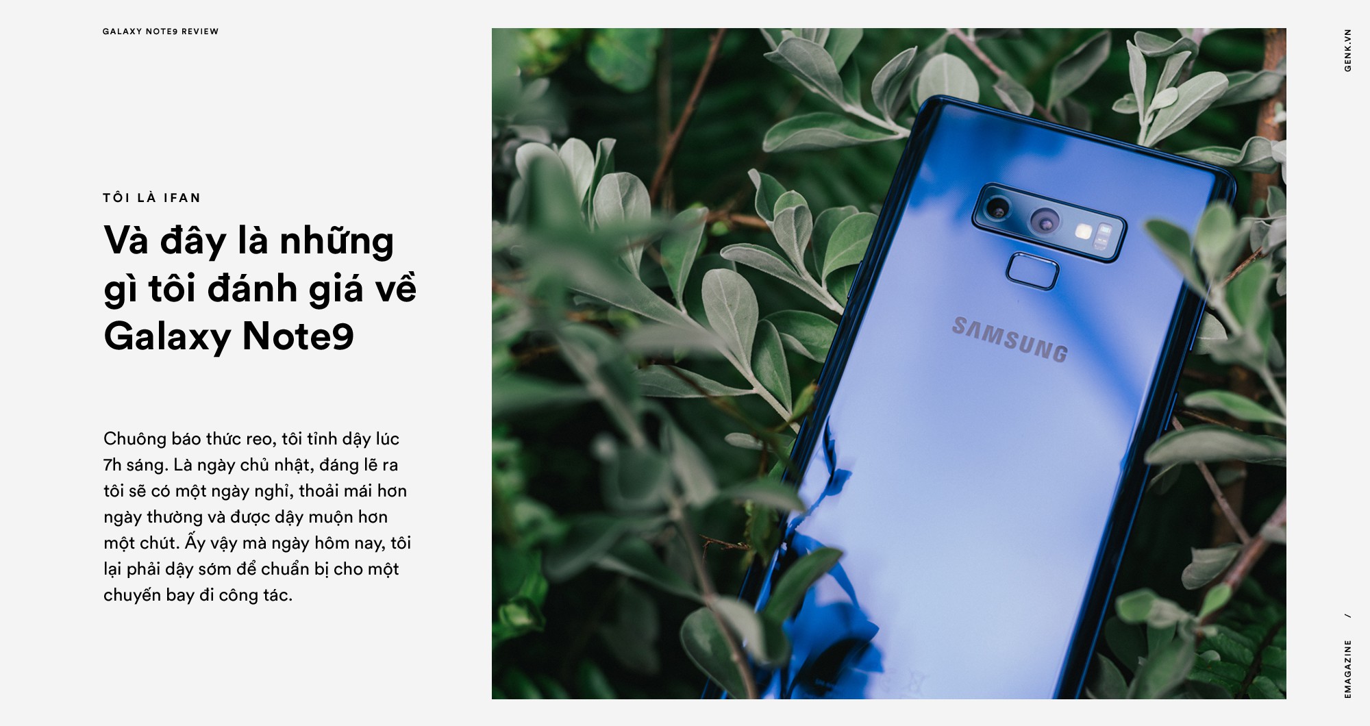 Với slogan “Quyền năng thách thức mọi giới hạn”, Galaxy Note9 là chiếc máy được sinh ra để đối chọi với những ngày như chuyến công tác vừa qua: nối tiếp bởi những chuyến bay dài, sau đó là cường độ làm việc liên tục và xen lẫn bởi những phút giây giải trí. Và trong tất cả tình huống đó, Galaxy Note9 chưa bao giờ khiến tôi phải thất vọng: