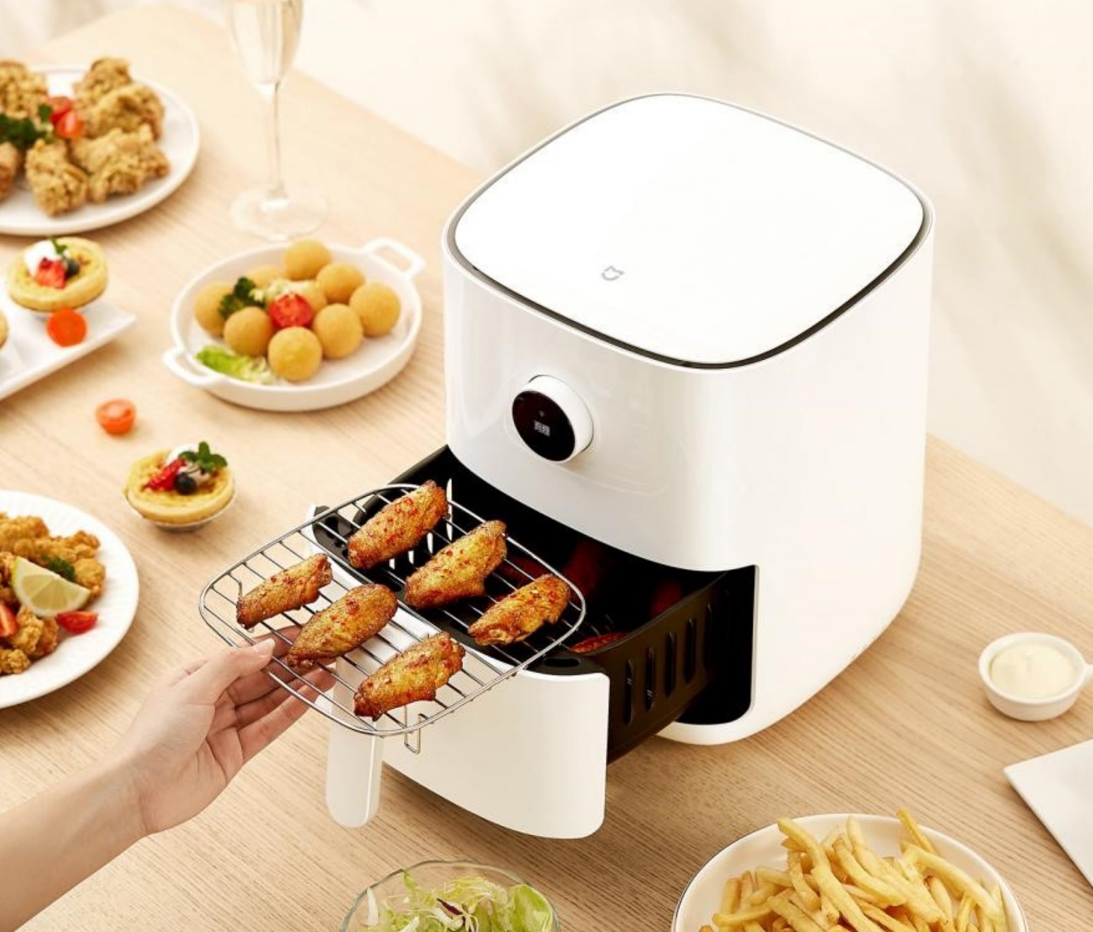 Thay vì phải mất công đứng canh bếp, lật trở từng miếng thức ăn trong chảo dầu, anh em chỉ cần làm đúng công thức, đặt đồ ăn vào giỏ chiên, bấm vài nút rồi đợi khoảng 15 - 20 phút là có ngay món chiên rán nóng hổi, giòn ngon lại vô cùng “healthy & balance” vì hạn chế đến 90% dầu mỡ.