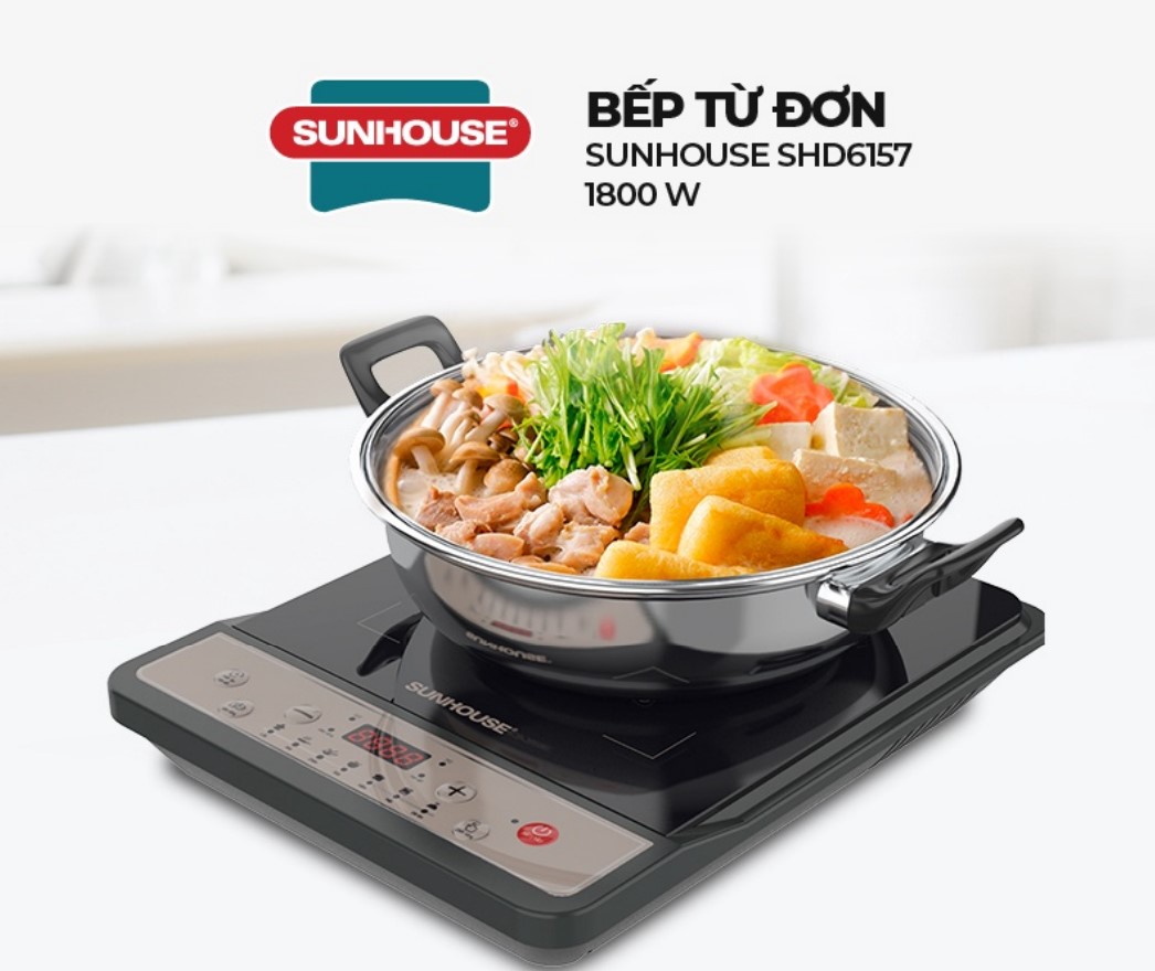 Nếu không thích nồi điện đa năng, các chàng trai có thể tìm mua các loại bếp từ mini nhỏ gọn dùng cũng tiện không kém, nhưng nhớ phải mua thêm xoong chảo phù hợp nữa. Loại bếp của Sunhouse dưới đây là hàng chính hãng, giá khá ổn, công suất 1800W đủ lớn mà còn tặng kèm nồi lẩu inox tính ra quá “hời” rồi.