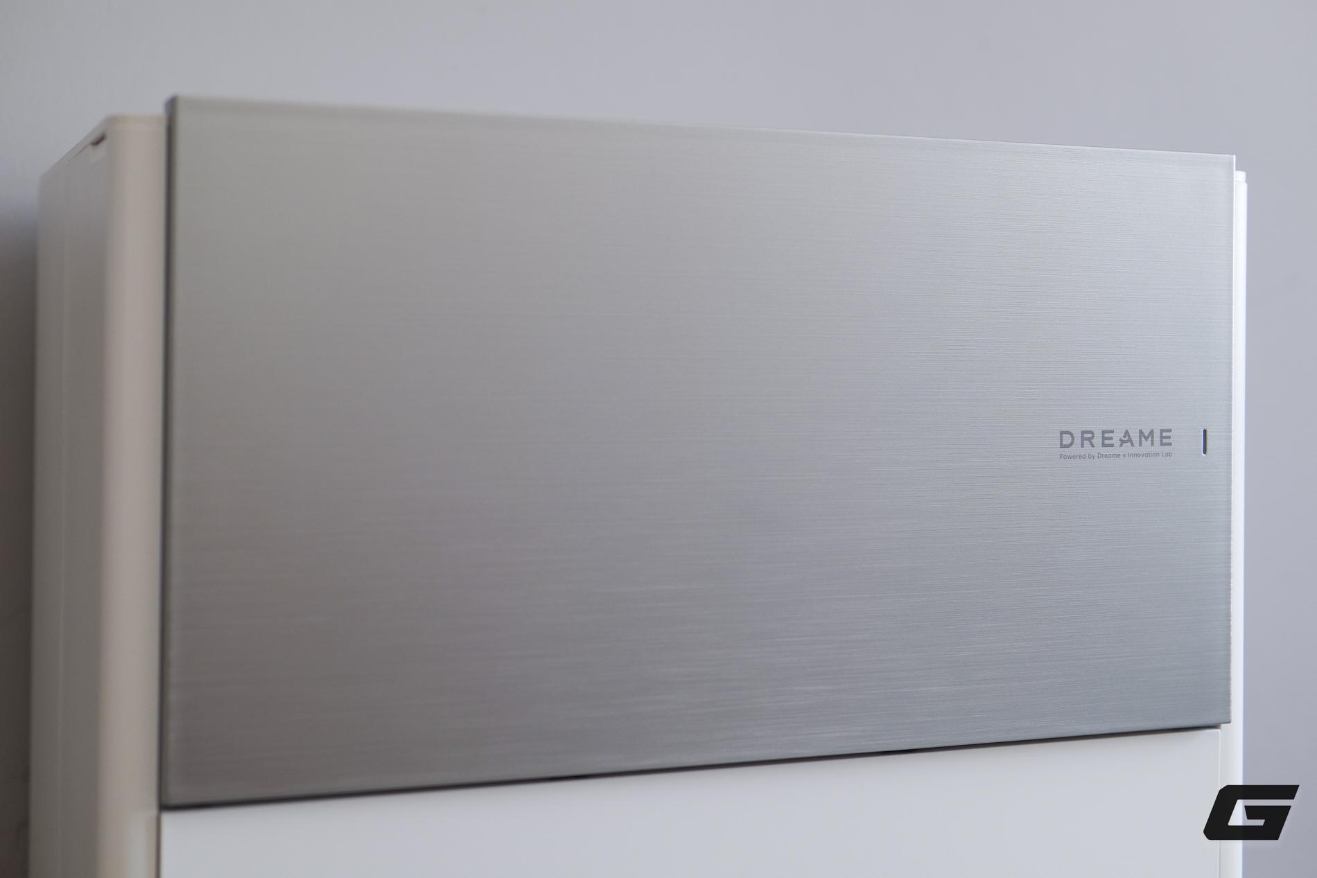 Ngay cạnh logo Dreame được in tối giản là một dải đèn LED báo trạng thái đặt dọc. Chi tiết này được thiết kế rất mảnh, phát ra ánh sáng dịu nhẹ để báo hiệu nguồn điện hoặc trạng thái hoạt động mà không gây chói mắt.