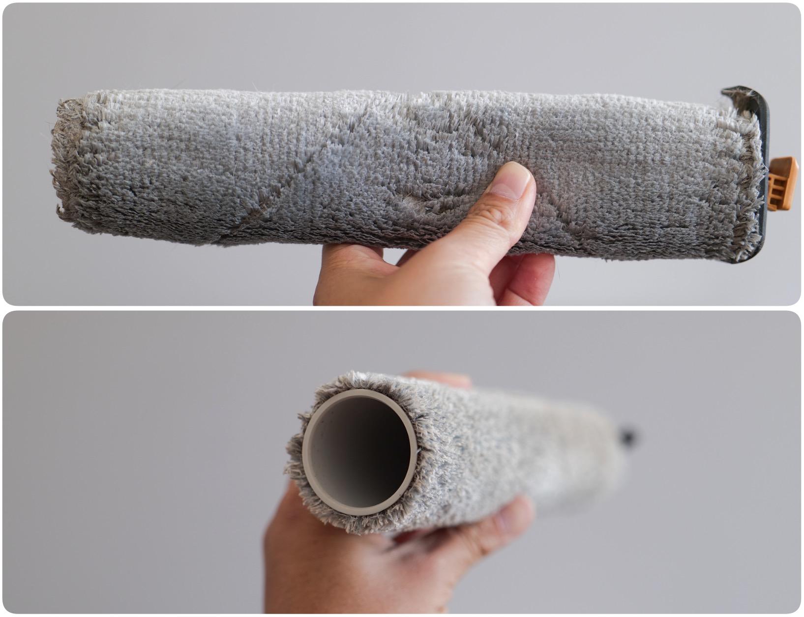 Điểm mấu chốt nằm ở thanh gạt tích hợp: nó sẽ ép chặt vào con lăn để vắt nước bẩn ra và hút ngay vào hộc chứa nước thải trên thân máy.