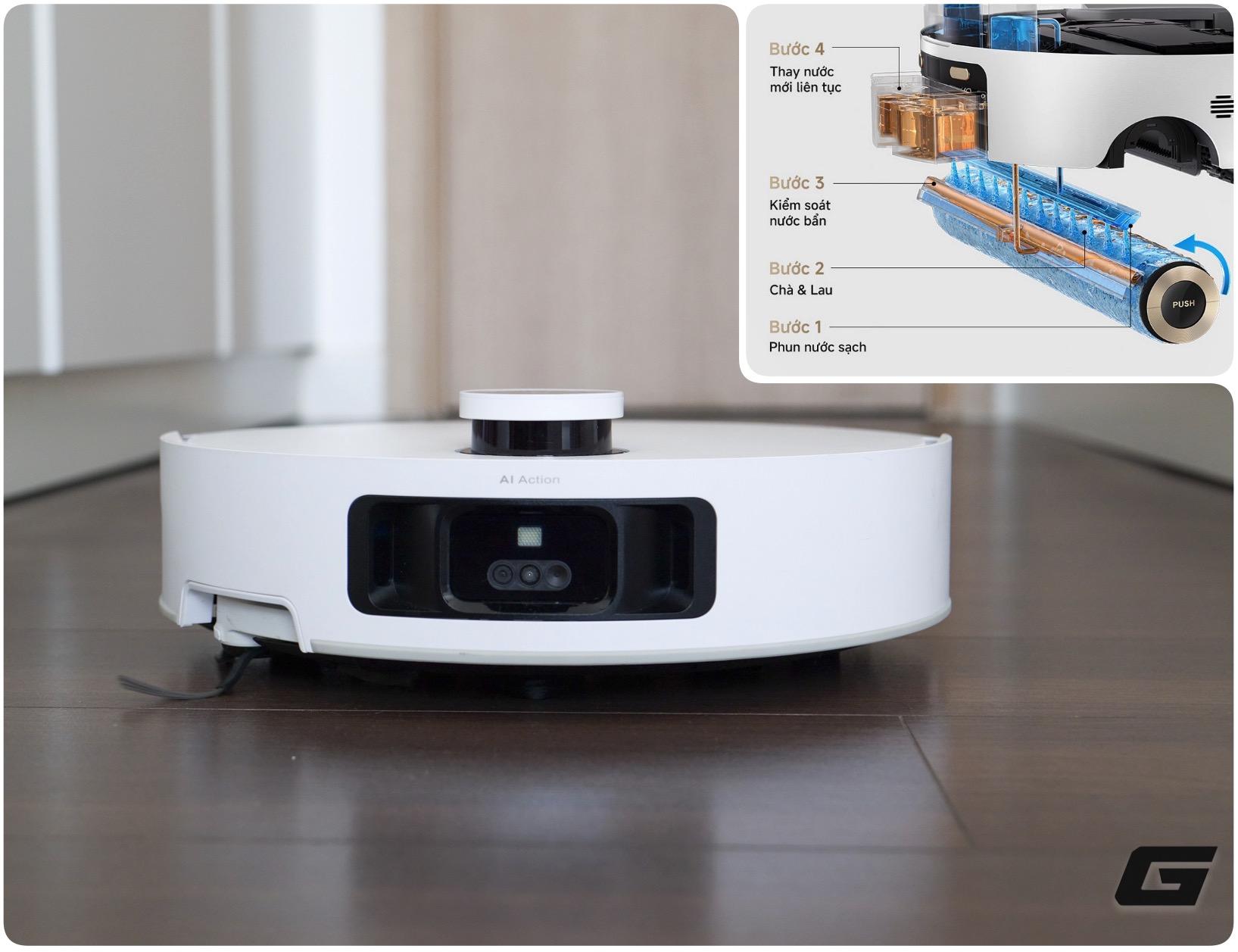 Nhờ vậy, robot luôn lau nhà bằng nước mới, hạn chế tối đa việc kéo vết bẩn từ phòng này sang phòng khác và rút ngắn thời gian làm sạch. Nếu bạn nào đã sử dụng máy lau sàn cầm tay thì sẽ thấy quen với cách làm sạch liên tục này và tích hợp nó trên robot hút bụi là một điều khá thú vị.
