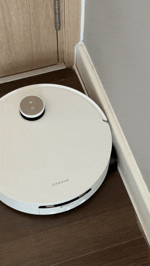 Khi cảm biến phát hiện robot đang di chuyển dọc mép tường hay tiếp cận các góc hẹp, chổi cạnh sẽ tự động vươn dài ra để quét sạch bụi bẩn ẩn sâu trong khe kẽ. Đồng thời, con lăn lau cũng kích hoạt cơ chế trượt mở rộng thêm 40mm ra phía ngoài máy. Sự phối hợp nhịp nhàng này đảm bảo mọi ngóc ngách, từ đường viền chân tường thẳng tắp đến các góc cạnh gồ ghề của chân bàn ghế, đều được làm sạch đồng bộ, loại bỏ cảnh người dùng phải cầm khăn đi lau lại những chỗ robot bỏ sót.
