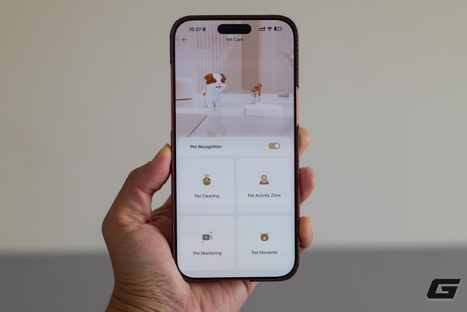 Bên cạnh nhiệm vụ dọn dẹp, hệ thống Camera AI trên robot còn đóng vai trò như một chiếc camera giám sát di động. Người dùng có thể truy cập vào ứng dụng để quan sát thú cưng từ xa, thực hiện đàm thoại hai chiều hoặc thú vị hơn là để robot tự động ghi lại các đoạn Pet Vlog ngẫu nhiên trong ngày. Ngoài ra, robot còn có khả năng học hỏi và lập bản đồ thói quen di chuyển của thú cưng, từ đó đề xuất các lịch trình vệ sinh bổ sung tại những nơi thú cưng thường xuyên lui tới, giúp không gian sống luôn sạch sẽ mà không cần người dùng phải cài đặt thủ công.