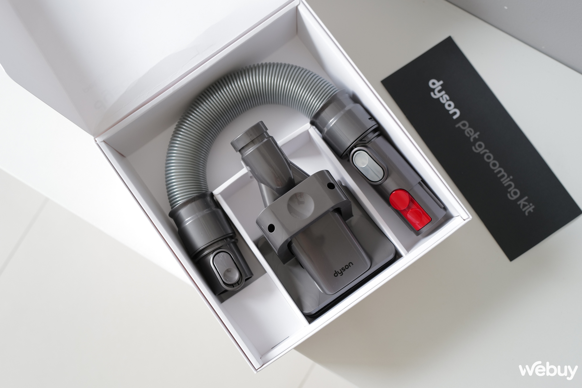 Cách đóng gói của sản phẩm này cũng không mấy lạ lẫm nữa vì tôi đã từng gặp ở phiên bản V12: sắp xếp rất gọn gàng trong chiếc hộp hình chữ nhật, hay thậm chí có thể nói là đội ngũ Dyson đã đóng gói rất tài tình đến nỗi khi tôi lấy tất cả những đầu hút ra hết thì không tài nào đặt vào vừa vặn được nữa.