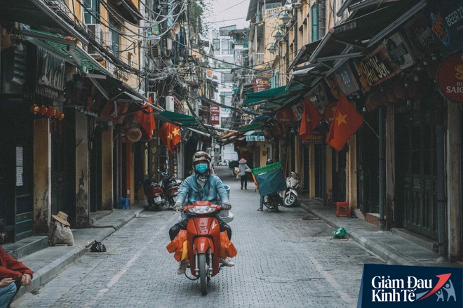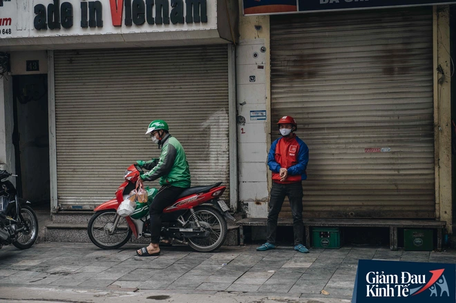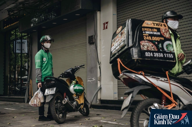 Trái với cảnh đường phố Hà Nội vắng tanh là một "cuộc sống khác": ở nhiều hàng quán vẫn tấp nập cảnh shipper đi giao đồ ăn