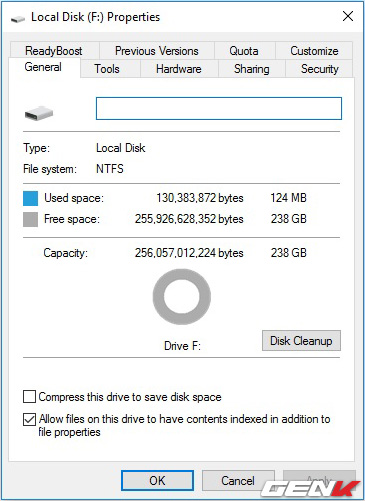 Dung lượng khả dụng của chiếc ổ là 238 GB.