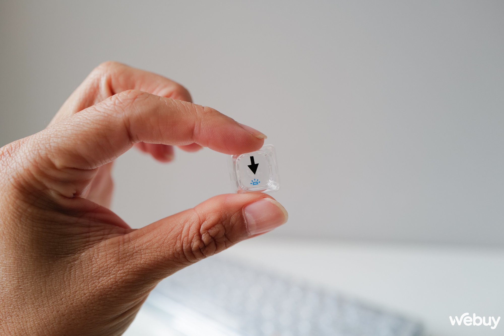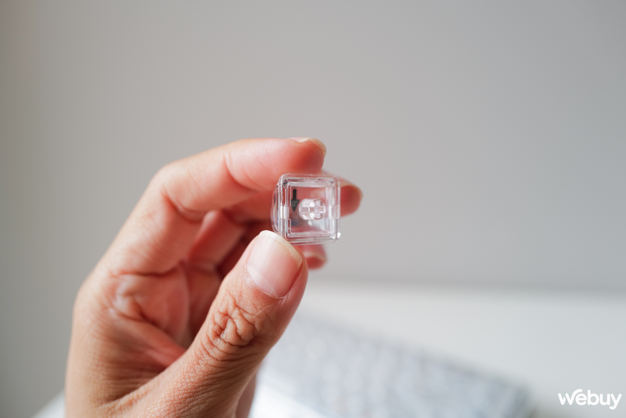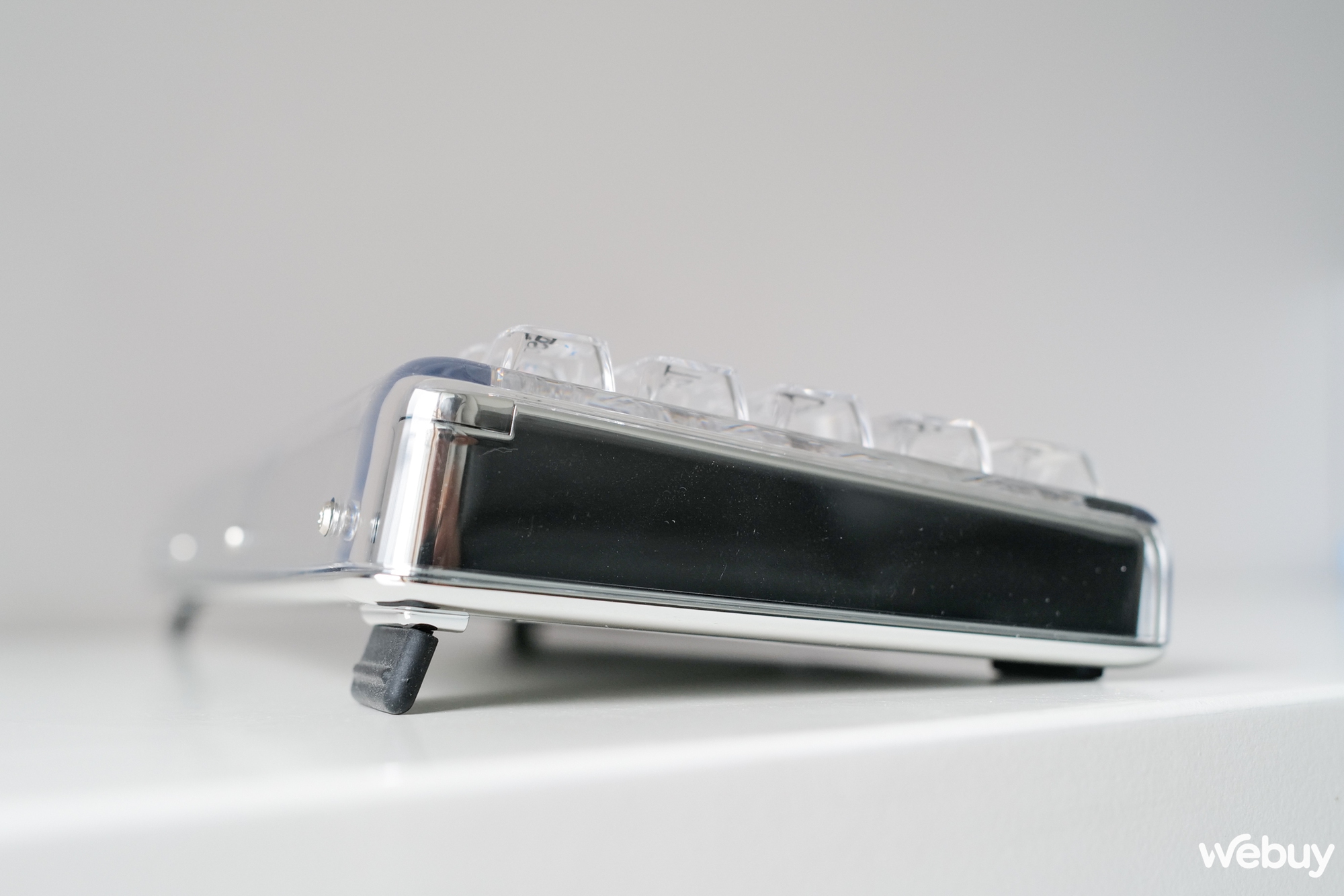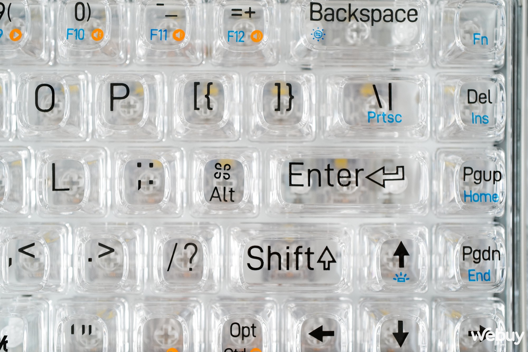 Nhìn gần hơn một chút, bạn sẽ thấy đây là một chiếc bàn phím có thiết kế trong suốt, thậm chí phần switch bên dưới cũng lộ rõ một phần.