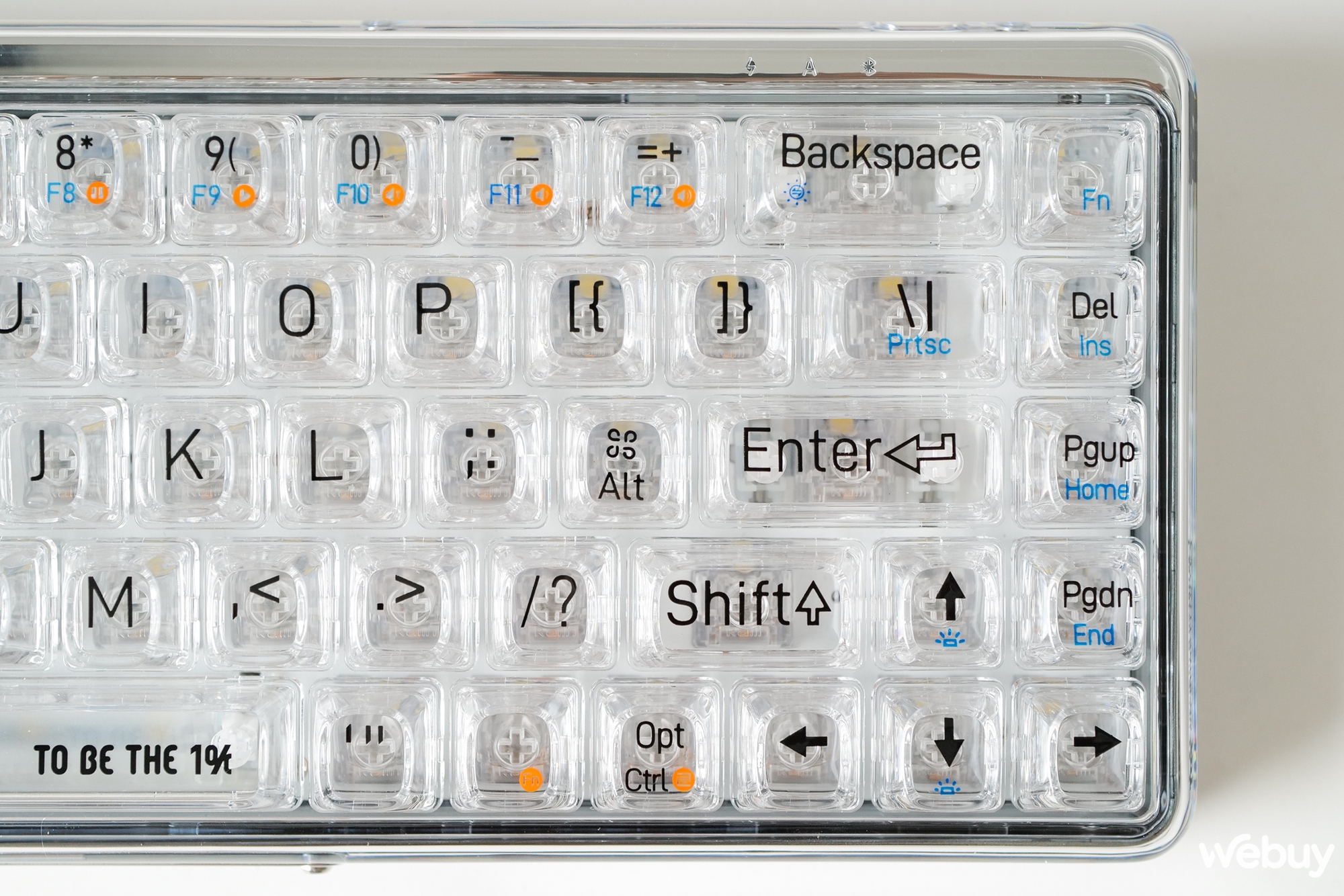 Phím Space được in dòng chữ To Be The 1% rất to. Tất cả phím còn lại được in chữ mỏng để nhường phần sân khấu cho sự trong suốt được "tỏa sáng".