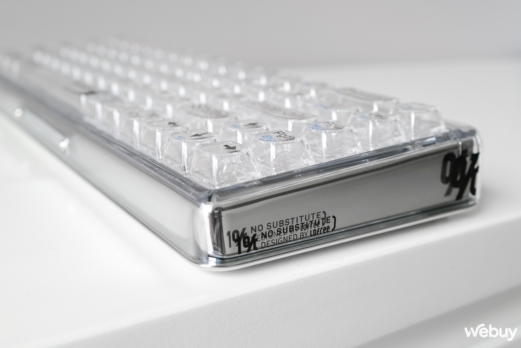 Lofree tự tin khẳng định chiếc bàn phím này có độ trong suốt lên tới 99% và 1% còn lại đủ để chúng ta nhìn thấy chiếc bàn phím trông như thế nào. Lofree cho biết, keycaps của bàn phím này được làm từ chất liệu PC cao cấp. Ký tự in trên keycap sử dụng phương pháp in Tampo và phủ UV giúp chống bám vân tay và phai màu hiệu quả hơn.