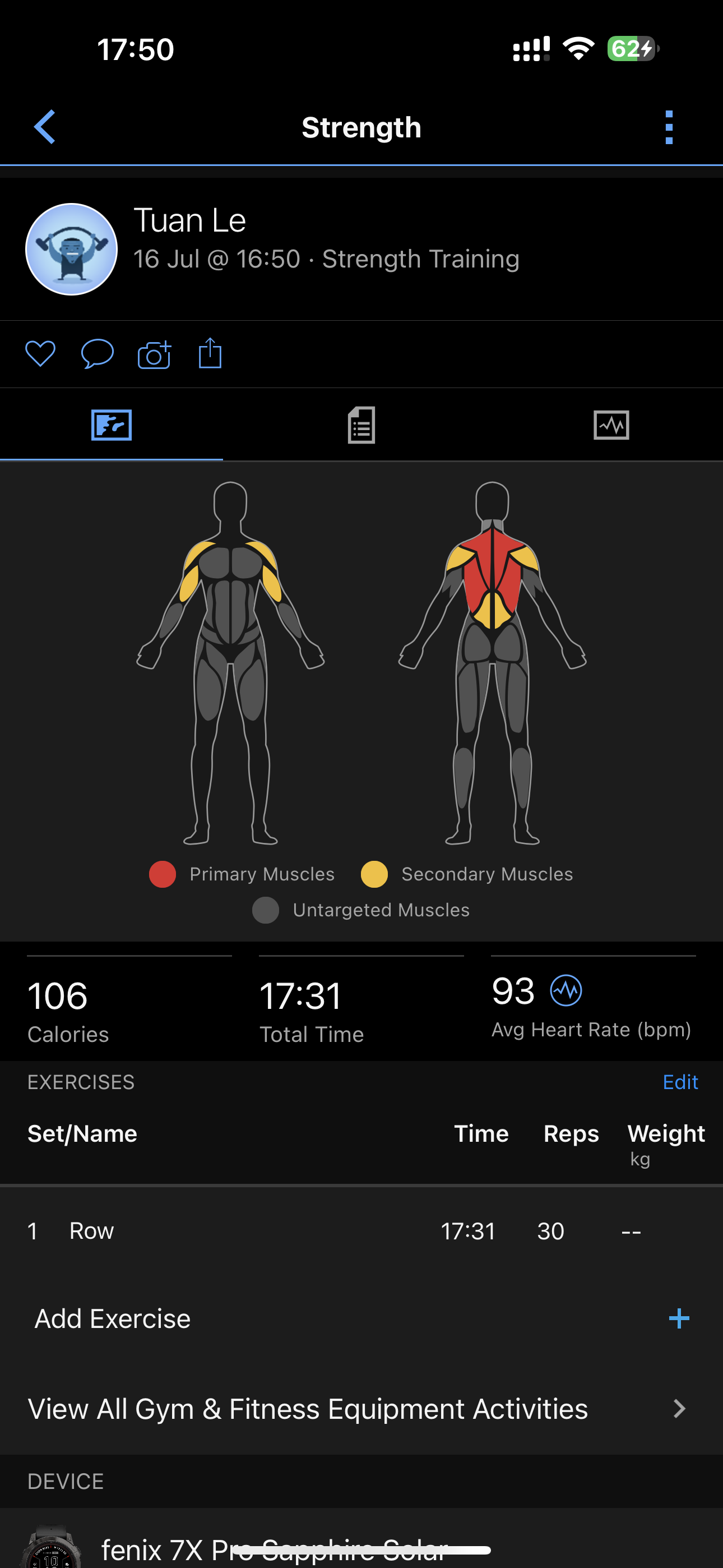 Ứng dụng của Garmin sau nhiều năm phát triển được đánh giá là gọn gàng, nhiều thông tin chi tiết nhưng dễ nhìn, dễ hiểu, có đủ các tính năng thông minh lẫn hỗ trợ luyện tập, nhận biết được bài mình đang tập và từ đó biết nhóm cơ nào hoạt động nhiều nhất ngày hôm đó. Mục đích là để biết độ hiệu quả cũng như để mình cho phần nhóm cơ đó nghỉ ngơi, tránh tập liên tục quá nhiều dễ gây chấn thương. Ví dụ hôm nay phần cơ lưng tập nhiều rồi thì hôm sau có thể chuyển sang tập ngực hay chân thay thế.