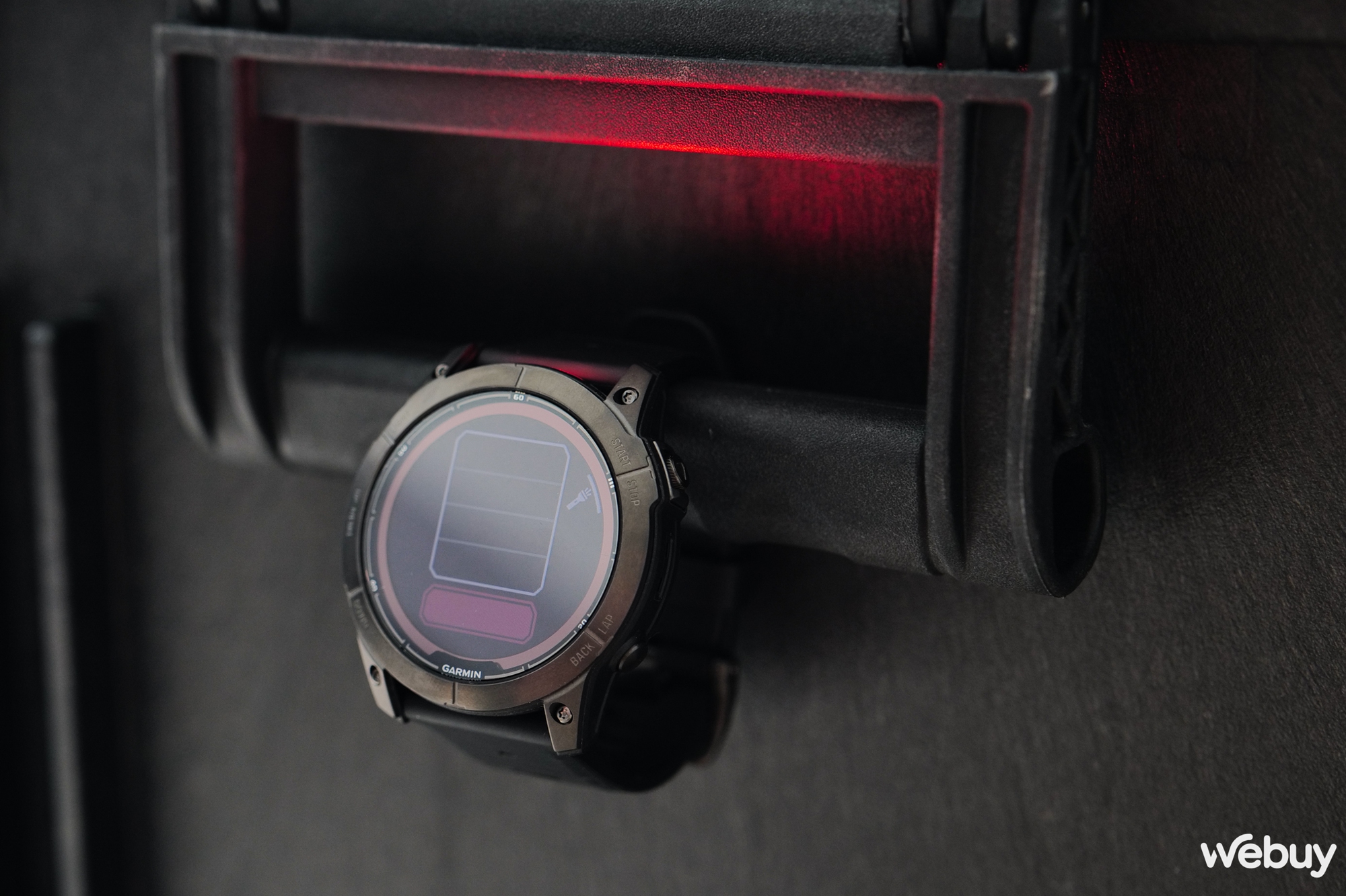 1 tính năng khá hay trên fēnix 7 Pro là được tích hợp sẵn 1 đèn pin nhỏ ở cạnh trên. Đèn này có độ sáng ở mức vừa phải, đủ để soi các vật thể nhỏ trong khoảng cách gần và có thể đổi màu đỏ như màu báo động SOS nhấp nháy.