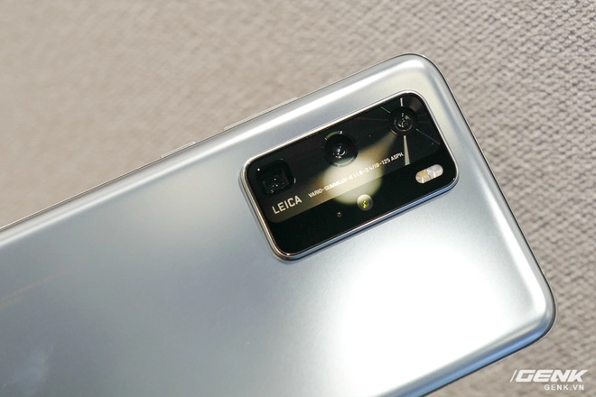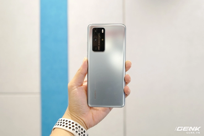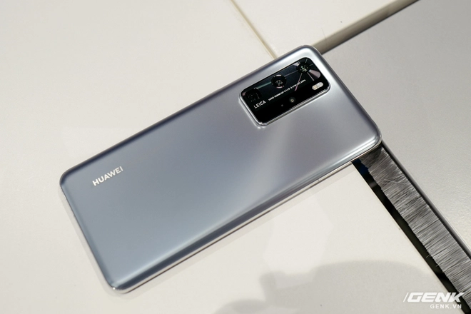 Dù có tông xám và kính nhám nhưng mặt lưng của P40 Pro này vẫn phản chiếu ánh sáng và thay đổi màu sắc từ xám sang trắng tùy góc nhìn rất hay.