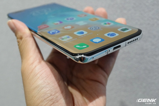 4 góc máy là những điểm dễ gây tức vỡ màn hình nhất nếu có va đập, thế nên cũng hiểu lý do vì sao Huawei buộc phải thiết kế gờ cao lên như vậy. Bên cạnh đó, trong quá trình thao tác người viết cũng nhận thấy màn hình ít bị chạm nhầm hơn (thường màn hình uốn cong hay gặp phải), có lẽ Huawei đã xử lý tốt phần này cũng như gờ góc máy nhô cao cũng giải quyết được phần nào. Hai cạnh viền trên và dưới của máy cũng được vát hơn cong để phù hợp với kiểu dáng "uốn lượn" mới hơn, thay vì vát phẳng như phiên bản P30 Pro trước đây.