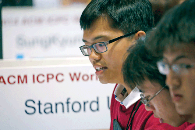 Phạm Hy Hiếu trong màu áo đội Cardinal của Đại học Stanford tham dự vòng chung kết Cuộc thi lập trình ACM dành cho sinh viên đại học toàn thế giới tổ chức tại Nga năm 2014. Việt Nam có một số sinh viên từng tham gia cuộc thi tin học quốc tế (IOI) được tham gia vòng chung kết thế giới trong màu áo các đại học MIT (Mỹ), NUS (Singapore)... nhưng chuyển từ thi toán quốc tế (IMO) sang thi ACM thì Phạm Hy Hiếu là trường hợp đặc biệt. Ảnh CTV