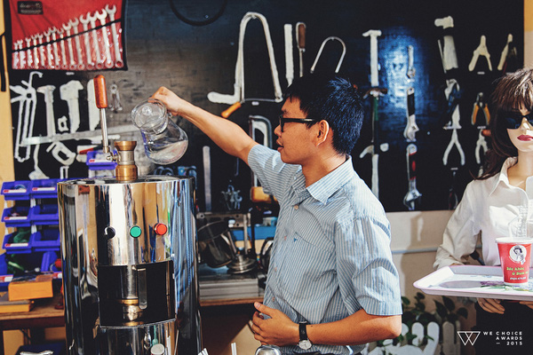 Anh cùng các cộng sự trao đổi về quá trình nghiên cứu máy pha cafe.