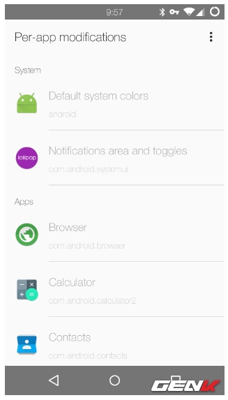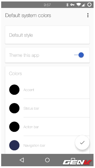 Tiếp theo là các lựa chọn tùy chỉnh thanh Status, Action và Navigation bằng cách nhấp vào tùy chọn Default system colors.