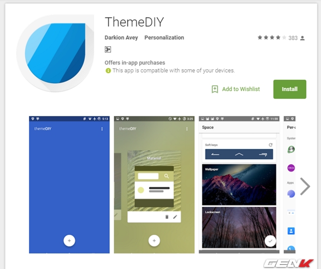 Tuy nhiên, nếu vẫn giữ ý định tự “design” cho mình 1 giao diện theo ý thích, hãy khởi động Google Play lên, sau đó tìm và tải về ứng dụng ThemeDIY của tác giả Darkion Avey.