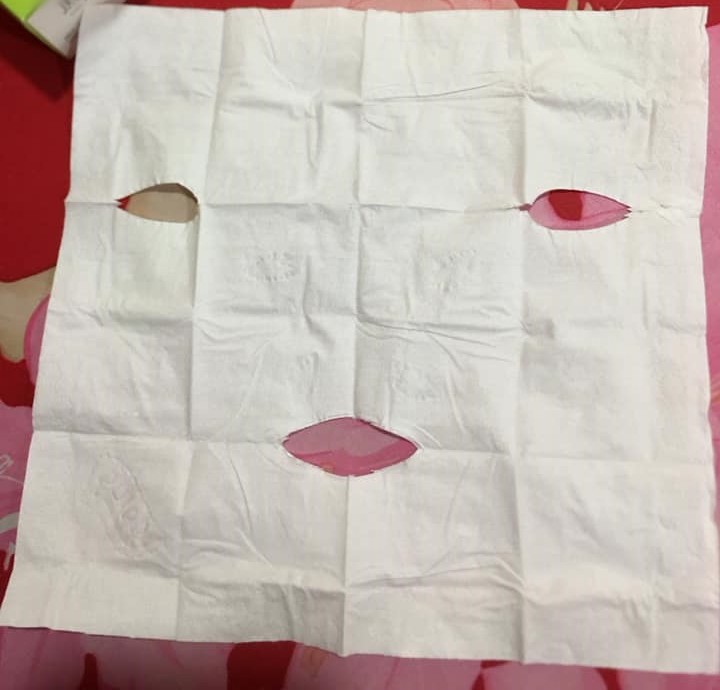 - Mình nghĩ là người bán tự mang khăn giấy ra cắt chứ mặt nạ gì kỳ vậy?