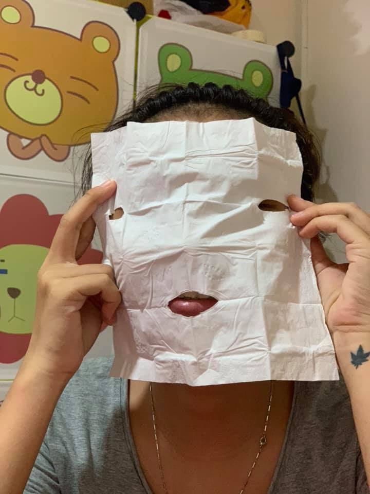 Theo 2 bức ảnh mà cô nàng đăng tải, mặt nạ được tặng kèm trông khá kỳ dị. Không chỉ vị trí của 2 mắt cách xa nhau, phần miệng quá nhỏ mà đặc biệt là không có phần mũi. Và chắc chắn khi đắp lên mặt thì người dùng sẽ không thể nào thở được.