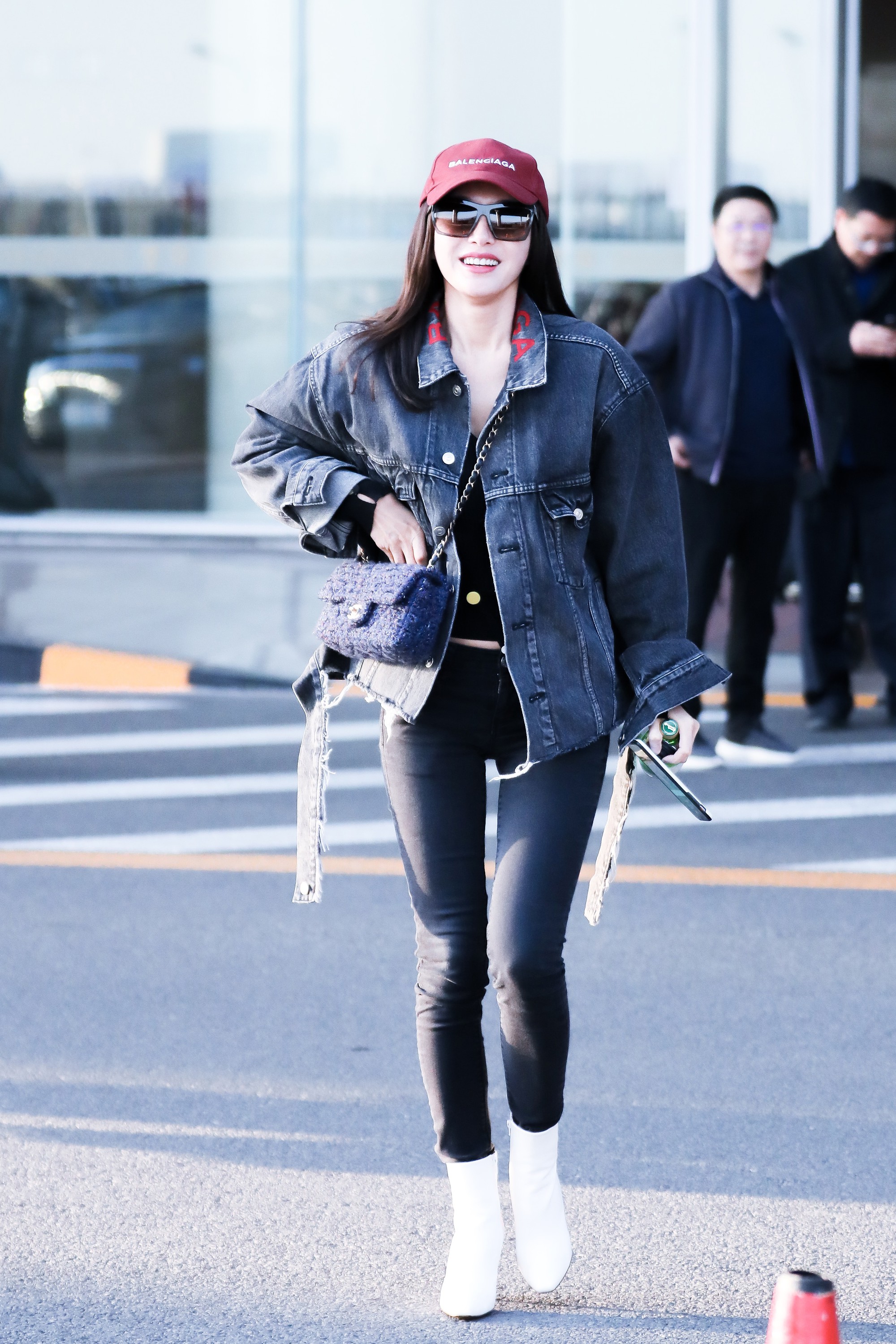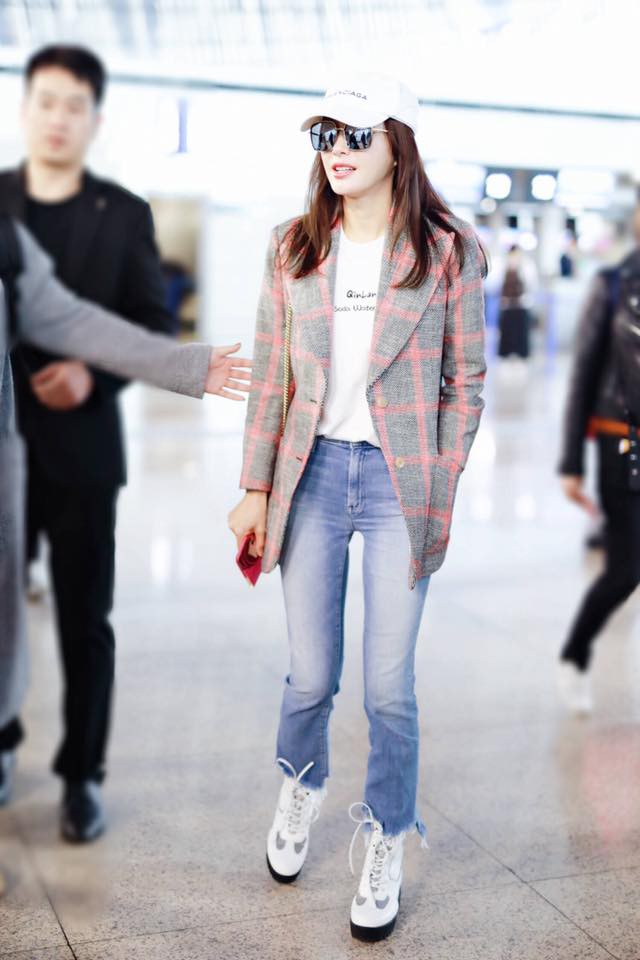 Tần Lam vẫn nổi tiếng là mỹ nhân sở hữu nhan sắc ngọt ngào, vóc dáng chuẩn chỉnh cùng với gu thời trang trẻ trung. Mỗi sự kiện mà cô nàng tham dự đều nhận được vô số lời khen vì khả năng hack tuổi đáng kinh ngạc. Thế nhưng khi ra sân bay mới dây, Tần Lam lại tự đồng lùn đi vài phân chỉ vì cố chưng diện với mẫu quần phá cách.