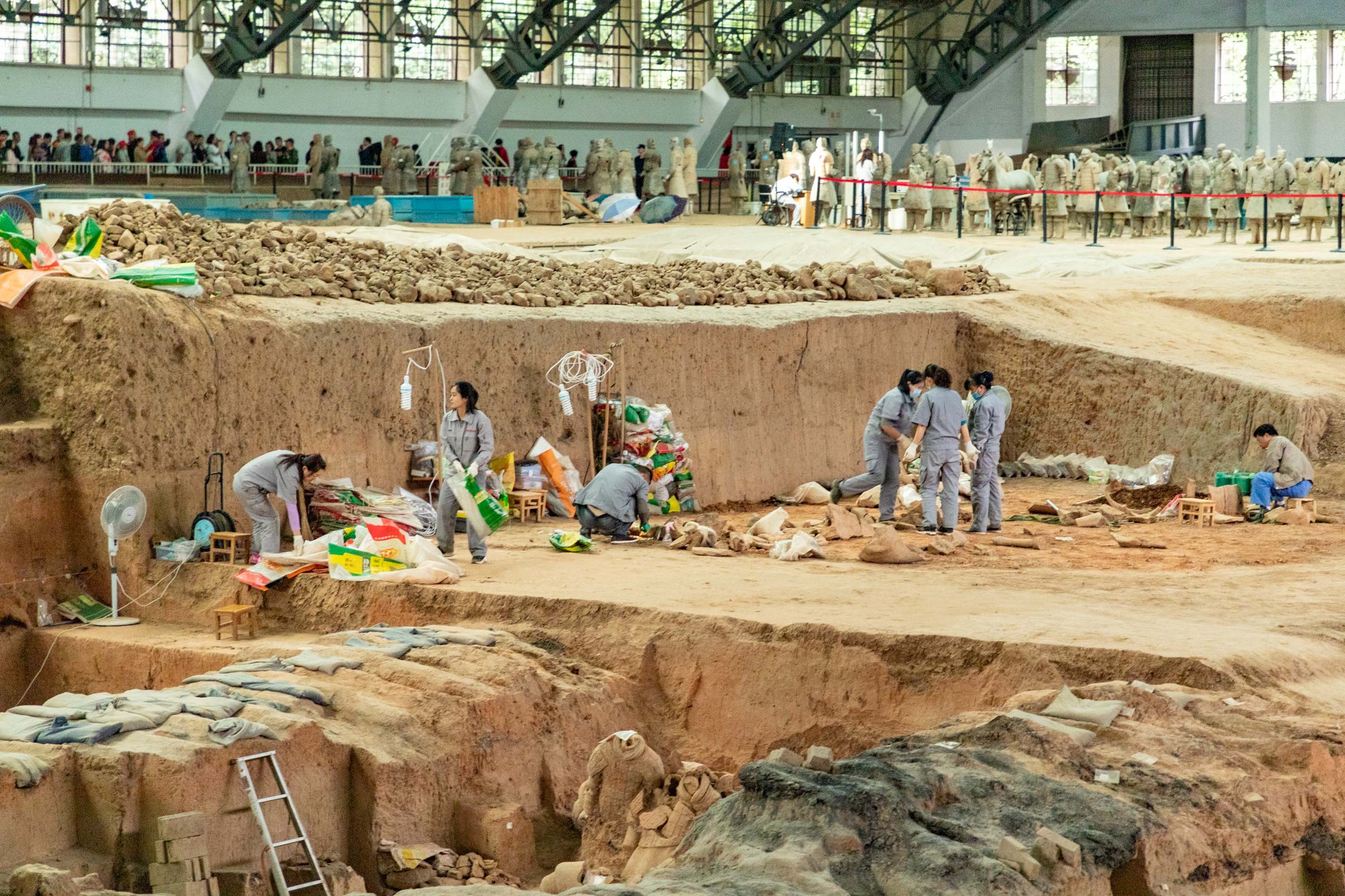 Vì sao phải tưới nước lên mặt đất trong khu di tích binh đoàn đất nung Tần Thủy Hoàng?