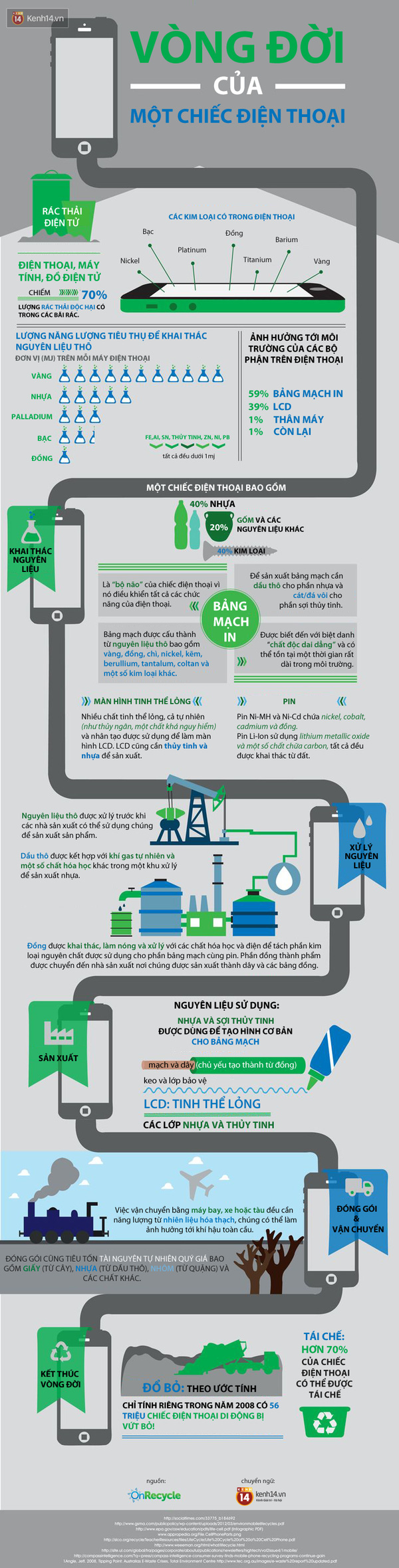 Hành trình của một chiếc điện thoại di động từ khi được sinh ra cho tới khi bị người dùng vứt bỏ.