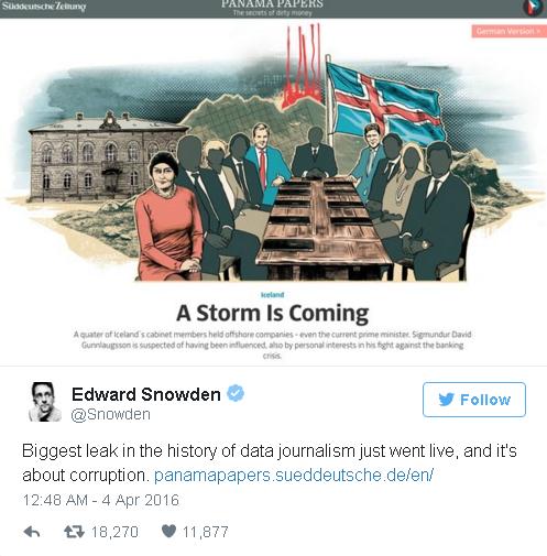 Theo Reuters đưa tin, trong số các chính trị gia có liên quan đến các công ty vỏ bọc ở nước ngoài, có cả Thủ tướng Iceland, Ukraine và Argentina. Cựu điệp viên Edward Snowden cũng đã đăng tải thông tin về vụ việc này trên trang cá nhân của mình. Anh cho biết rằng: “Vụ rò rỉ lớn nhất trong lịch sử báo chí đã lên sóng, và nó là về vấn đề tham nhũng”.
