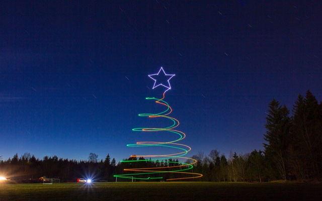 Hòa cùng không khí đón giáng sinh, một công ty sản xuất drone (máy bay không người lái) đến từ Đức đã lên ý tưởng vẽ hình ảnh về xe tuần lộc, cây thông và ông già Noel lên bầu trời đêm.