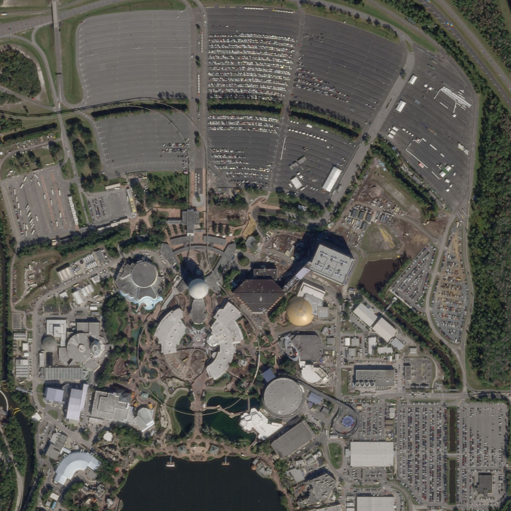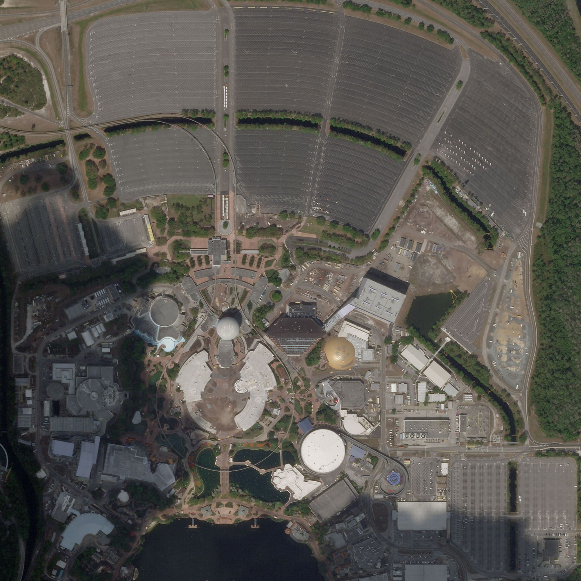 Lấy chủ đề về công nghệ trong tương lai gần, Epcot Center đón hàng chục triệu lượt khách ghé thăm mỗi năm. Trong bức ảnh chụp vào ngày 6/1/2020, một hàng dài otô của du khách ghé thăm công viên đỗ san sát nhau. Tuy nhiên trong bức ảnh chụp vào ngày 18/3/2020, các bãi đậu xe khổng lồ của Epcot Center đã hoàn toàn vắng lặng, sau khi bản quản lý công viên ra thông báo tạm thời đóng cửa vào 2 ngày trước đó.