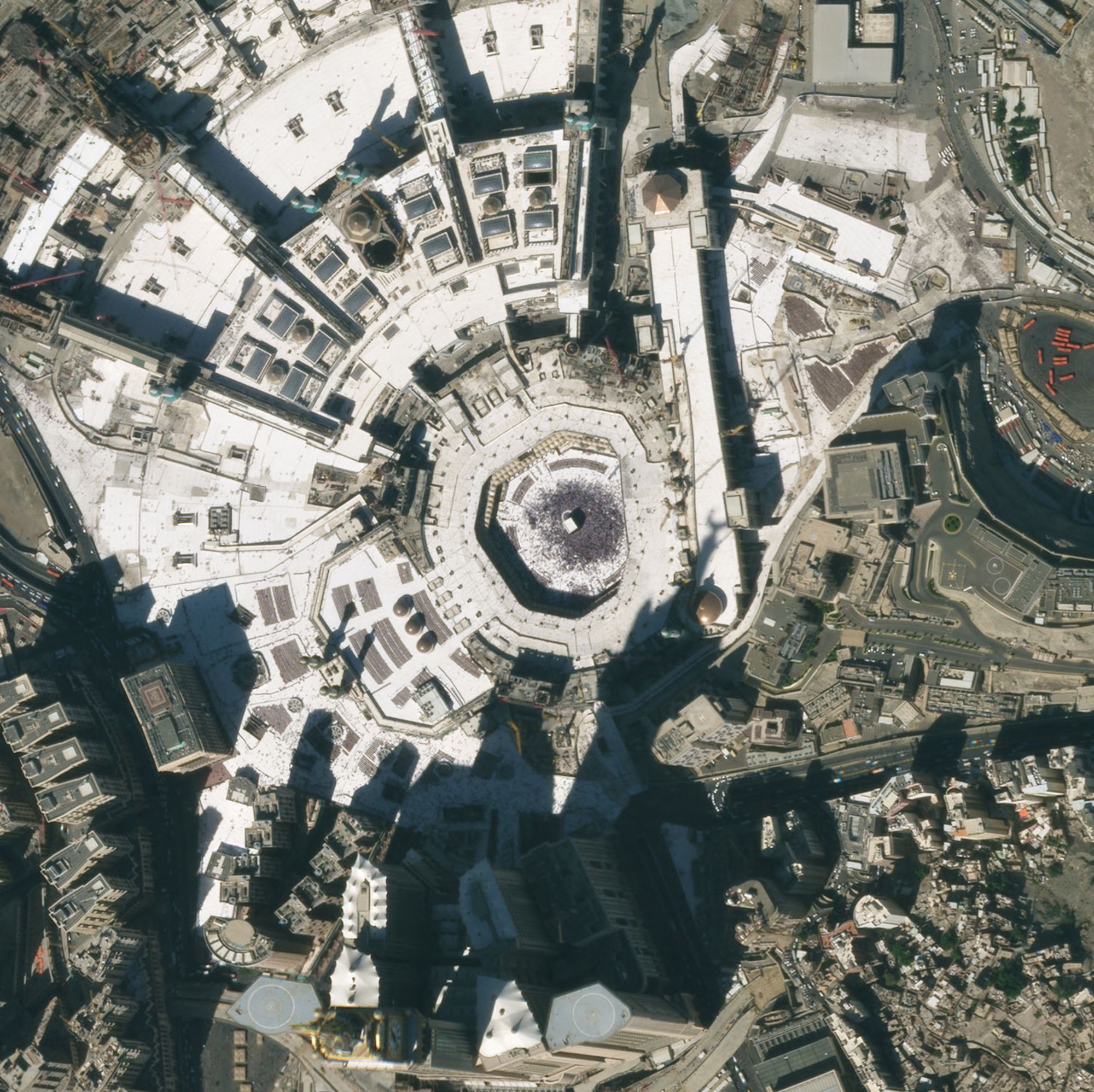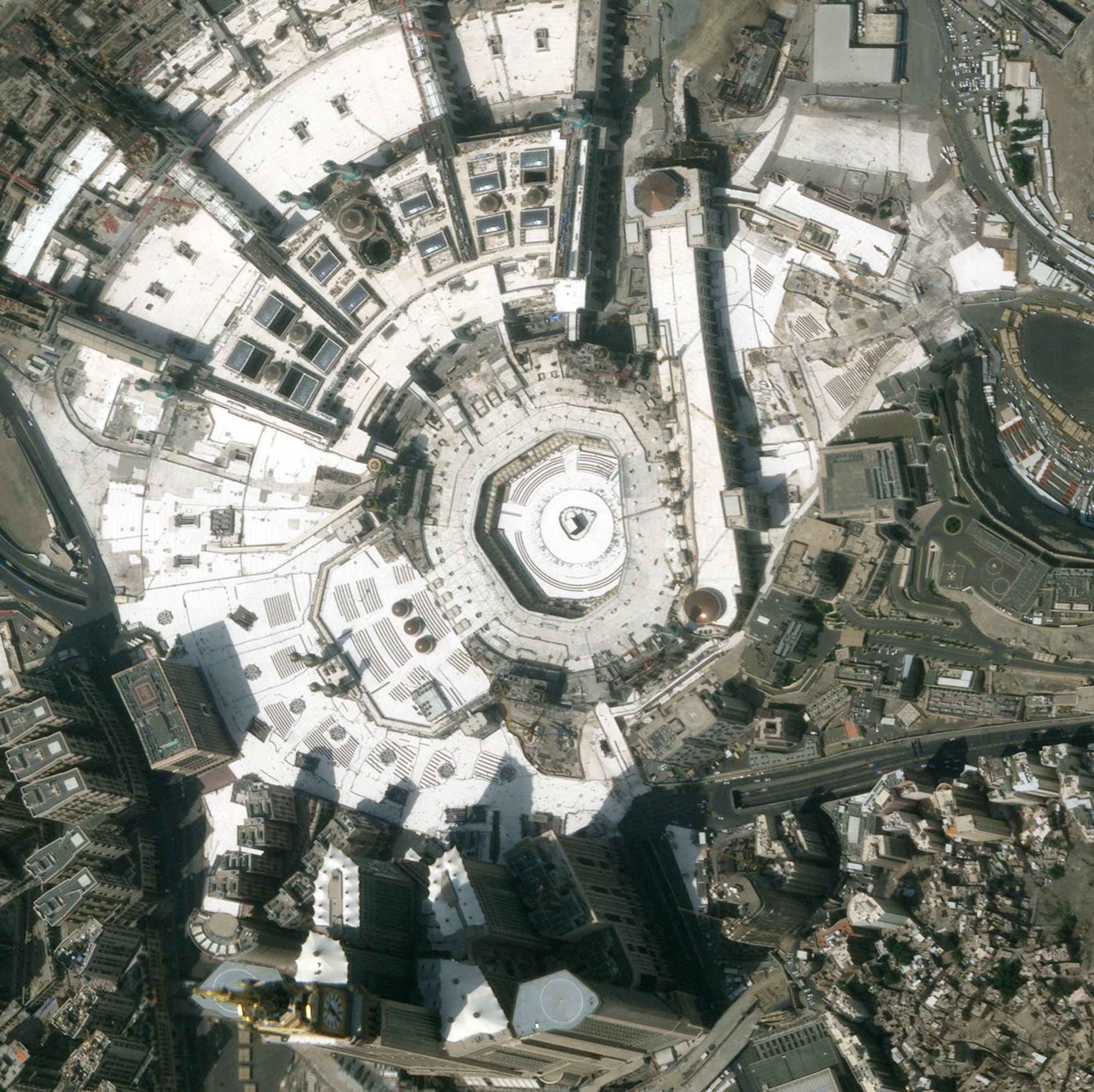 Không ảnh chụp thánh đường Al-Masjid al-Haram ở Mecca, Ả Rập Saudi – địa điểm linh thiêng nhất của người Hồi Giáo. "Trái tim’ của thánh địa Mecca là một công trình màu đen bí ẩn, có tên Kaaba (Khối lập phương). Đây là nơi đầu tiên trên thế giới được dùng làm nơi thờ phụng của người theo đạo Hồi, được xem là "Nhà của Allah". Mỗi năm, hàng triệu tín đồ Hồi giáo lại hành hương tới đây cầu nguyện.